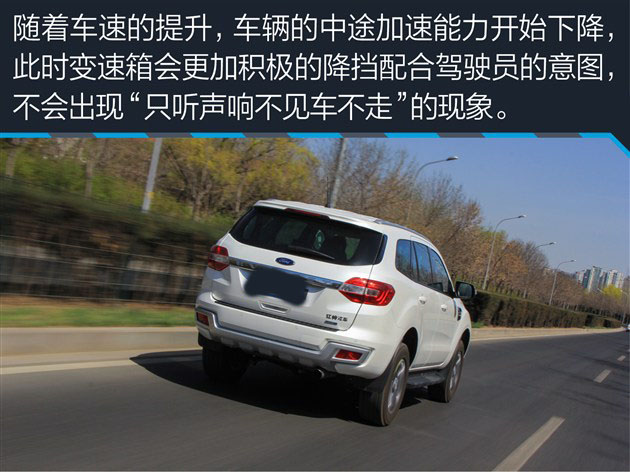 除了非鋪裝路面之外,撼路者在大部分時間里都在城市中行走,相比于普拉多2.7L或是帕杰羅3.0L車型孱弱的動力表現(xiàn),撼路者搭載的2.0L EcoBoost渦輪增壓發(fā)動機(jī)有著180kW的最大功率,峰值扭矩也達(dá)到360Nm,傳動部分則是一臺六速手自一體變速箱,無論是硬件規(guī)格還是動力參數(shù)都要好于競爭對手。