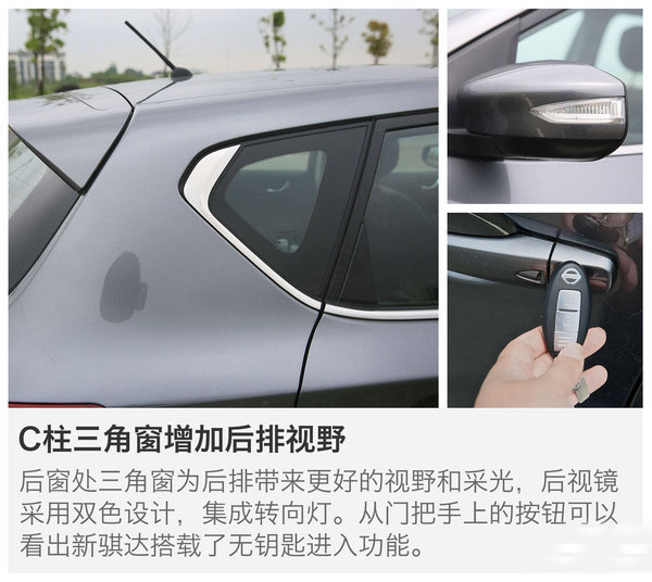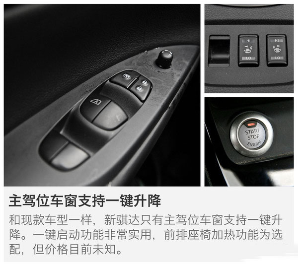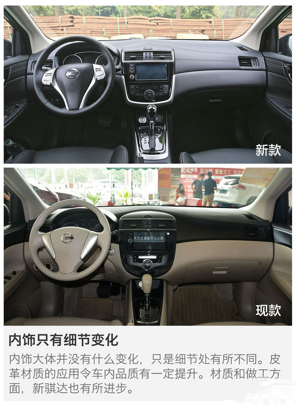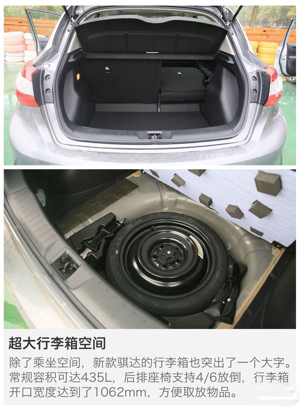 大,沒想到新款騏達仍然繼承了“小中見大”這個特點。在如此小巧的車身中做出這么大的空間,日產一直是行家里手。相信有這一點,對于騏達的老用戶來說,就已經難以抗拒了。但是動力方面,1.6L自然吸氣發動機動力水平與現款無異。1.6T在先期不會推出,日產方面表示,還需觀察市場的反饋而決定。
