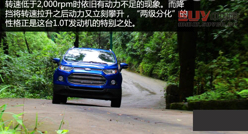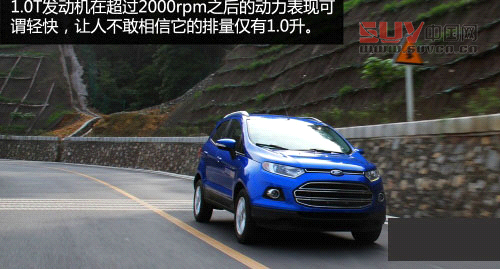 這臺1.0T EcoBoost發動機在重慶的崎嶇山路中表現得可謂“兩極分化”,盡管其參數中170Nm的最大扭矩從1,500rpm就開始全數發放,但實際駕駛中發動機需要接近2,000rpm時才開始有非常明顯的動力輸出。在這個轉速之前,翼搏1.0T的動力顯得有點孱弱,畢竟1.0L排量的低轉速扭矩依舊是短板,尤其在面對重慶非常陡峭的上坡時。