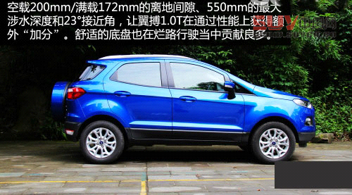 翼搏1.0T的“加分項目”是通過性能:滿載離地間隙172mm、最大涉水深度550mm以及超短前后懸帶來較大的接近角和離去角都是非常突出的。尤其涉水能力,對近日普降暴雨又排水不暢的地區意義更突出。加上較為柔和、舒適的底盤在非鋪裝路面的出色表現,因此翼搏1.0T的整個通過性能和“爛路”行駛能力都足以傲視這一級別的其它車型。