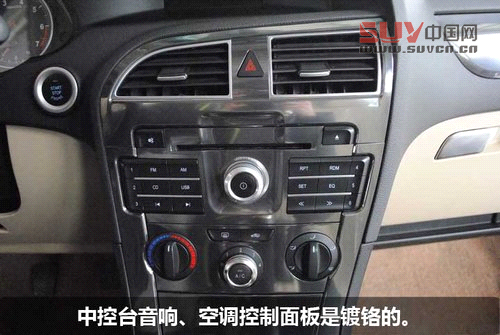 中控臺上凹陷進去的液晶顯示屏很有特色,音響、空調控制面板也是鍍鉻的。全系配備西門子的CD和收音機,另外還搭載了USB接口、AUX-IN音頻接口,加上4個揚聲器,使音響效果十分立體、音樂十分動聽。
