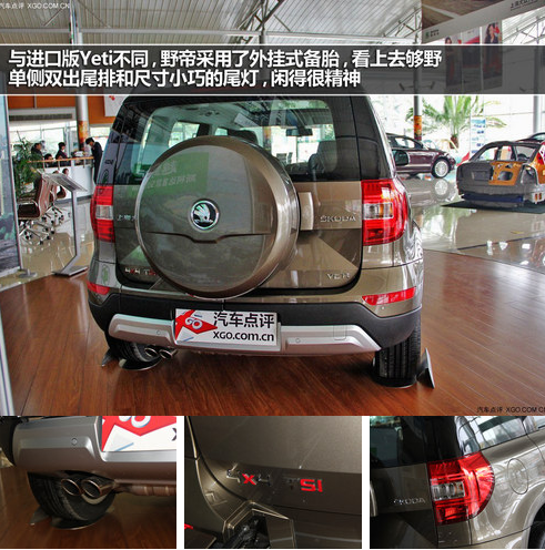 與進口版Yeti不同,野帝采用了外掛式備胎,這是個利與弊結合的東西,好處當然是看上去夠野,但在城市行走,會影響對車尾距離的判斷,當然老生常談的長時間拖掛影響尾門結實程度的技術問題,相信已經(jīng)不是問題了。