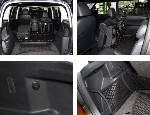 野帝打開尾門的流程多了一項,即先要掀開備胎,再開啟后備箱尾門,配備的液壓挺桿讓這個過程并不費力。通過4/2/4分比列翻轉放到的后排座椅,可以將后備箱空間由標準的335升擴充到1535升,網(wǎng)兜掛鉤12V電源等配置齊全。