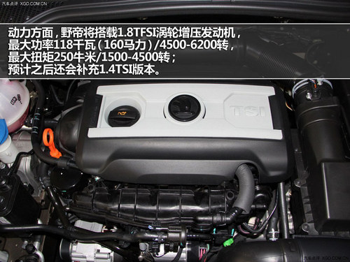 動力方面,野帝將搭載1.8TFSI渦輪增壓發(fā)動機,最大功率118千瓦(160馬力)/4500-6200轉,最大扭矩250牛米/1500-4500轉;匹配6速DSG雙離合變速器。預計之后還會補充1.4TSI版本。
