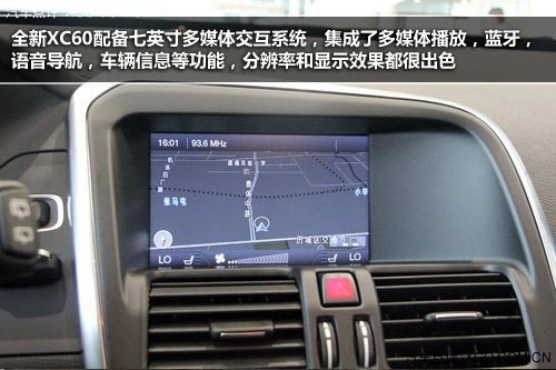 全新XC60配備七英寸多媒體交互系統,集成了多媒體播放,藍牙,語音導航,車輛信息等功能,分辨率和顯示效果都很出色。