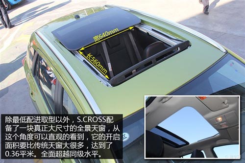 S.CROSS的車身尺寸在同級(jí)競(jìng)爭(zhēng)對(duì)手中并不占優(yōu),但它的空間表現(xiàn)滿足家用完全沒(méi)問(wèn)題,做為一款SUV,它的后備箱空間表現(xiàn)不俗,可全部放倒的后排座椅保證了良好的擴(kuò)展性。最大亮點(diǎn)則是它的全景天窗,這款天窗采用兩段式設(shè)計(jì),真正實(shí)現(xiàn)了全開(kāi)啟,絕對(duì)超越同級(jí)對(duì)手。