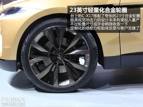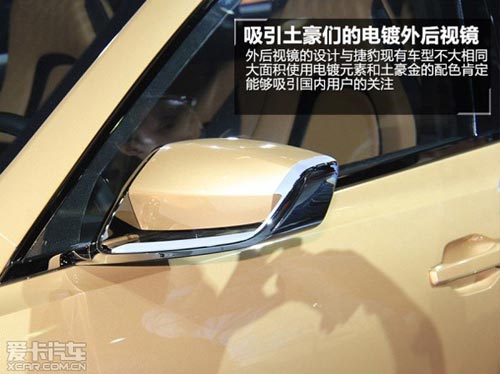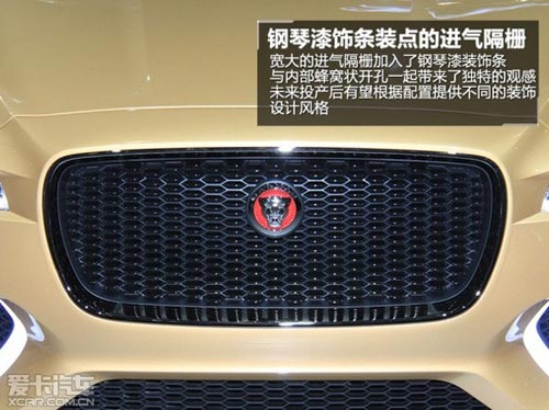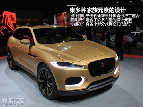 2013年廣州車展,捷豹品牌帶來(lái)了旗下最新的運(yùn)動(dòng)型跨界概念車---C-X17。這款車曾經(jīng)在法蘭克福車展中完成全球首發(fā),不過(guò)此次來(lái)到廣州的C-X17卻發(fā)生了很多變化。應(yīng)用捷豹最新智能全鋁架構(gòu)的C-X17換上了更吸引中國(guó)消費(fèi)者的金色涂裝,內(nèi)飾設(shè)計(jì)也更為奢華。不過(guò),最重要的是它改為了五座設(shè)計(jì),更具實(shí)用性。下面就請(qǐng)通過(guò)我們的現(xiàn)場(chǎng)圖解來(lái)認(rèn)識(shí)這款全新的捷豹概念車吧。