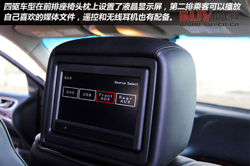 JX35對于第二排乘客的舒適度較為重視,不僅有獨立分區空調,四驅車型還帶有第二排座椅加熱、通風,220V交流電源接口也有設置。值得一提的是,四驅車型在前排座椅頭枕上設計有液晶顯示屏,第二排乘客可以播放各自不同的娛樂信息,無線耳機和遙控的引入則是為了不干擾駕駛者。