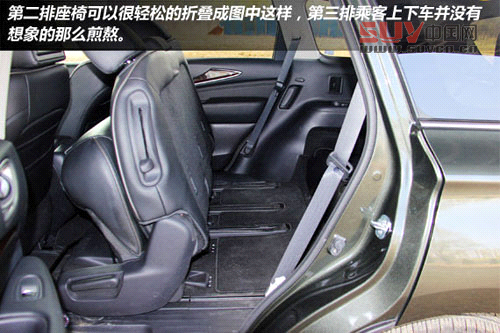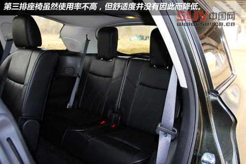 第三排座椅雖然使用率并不高,但在JX35上,第三排座椅的舒適度沒有被降低,將第二排座椅向前滑動即可方便第三排乘客方便的進出,并且不需要對安放于第二排的兒童座椅進行拆卸。
