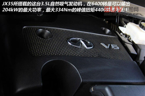在所有車型都回歸自然吸氣發動機之后,可見英菲尼迪對于舒適性的側重有多少,這個生于日本長于美國的“混血兒”承襲了美系車愛用大排量發動機和不加渦輪的特點,但骨子里依舊是一個溫和的日本孩子。JX35搭載的這臺3.5L自然吸氣發動機,在6400轉是達到最大功率輸出峰值204kW,最大334Nm的扭矩在4400轉即可輸出。