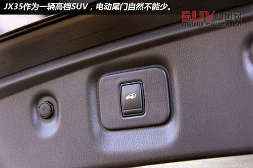 在第三排座椅正常設置的情況下,JX35的后備廂就已經擁有447L的容積了,將后兩排座椅完全放倒后,容積可以擴展至2144L。對于JX35這樣一個大尺寸的SUV來說,在空間上具備相當的優勢,寬敞的內部空間和足夠大的儲物空間,再加上能容納7名乘客的座椅布局,能夠滿足車主多樣化的需求,將會開啟一個新的細分市場。