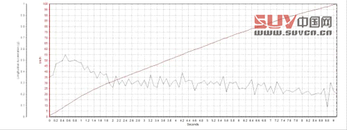 仔細觀察JX35的儀表盤,會發現轉速表的紅線刻度在6500轉,屬于高轉速發動機,起步的時候沒有優勢不代表這臺3.5L發動機沒力氣。經過測試,最終我們得到了0-100km/h加速9.09秒的成績,基本在意料之中,與我們的期望差距不大。