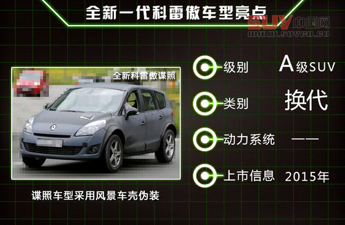 從曝光的諜照來看,全新一代科雷傲雖然采用了雷諾風景的車身進行偽裝,不過從車身輪廓中可以看出新車型的設計將略帶有MPV車型的設計元素,從而通過該級別車型更高的實用性,滿足更多用戶不同的用車需求。