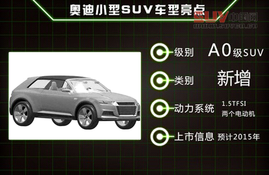 預(yù)計(jì)2015年將引入的奧迪小型SUV,與下一代A1同平臺(tái)不僅可以減少成本和時(shí)間,搭載的全新混合動(dòng)力系統(tǒng)也使奧迪逐步邁向新能源領(lǐng)域,品牌影響力得到進(jìn)一步提升的同時(shí),也為奧迪未來在SUV市場(chǎng)的發(fā)展奠定了更廣泛的市場(chǎng)基礎(chǔ)。
