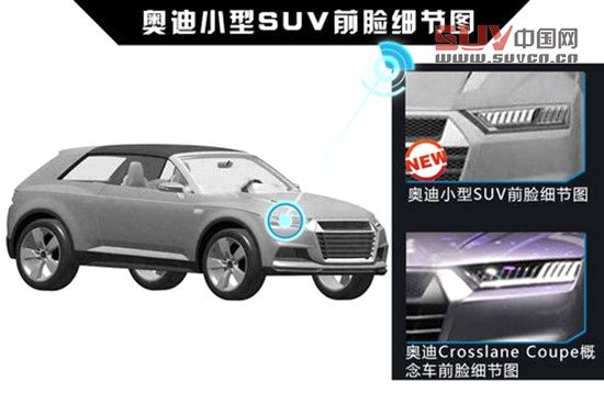 德系傳統(tǒng)三強(qiáng)中奧迪的產(chǎn)品序列已經(jīng)趨于完善,涵蓋了從A1至R8一系列車型。不過在SUV產(chǎn)品線中,奧迪目前在小型SUV領(lǐng)域至今無相應(yīng)產(chǎn)品推出。在去年的巴黎車展上,奧迪曾亮相過一款Crosslane Coupe概念車,該車的設(shè)計(jì)為未來奧迪小型SUV的藍(lán)本。近日網(wǎng)通社獲取了一組奧迪全新小型SUV的國(guó)內(nèi)申報(bào)圖和部分信息,該車將基于下一代奧迪A1的MQB平臺(tái)打造,動(dòng)力方面搭載一臺(tái)1.5TSI三缸渦輪增壓發(fā)動(dòng)機(jī)和兩臺(tái)電動(dòng)機(jī)組成的混動(dòng)系統(tǒng)。據(jù)悉,奧迪首款小型SUV有望在2015年引入國(guó)內(nèi)銷售。