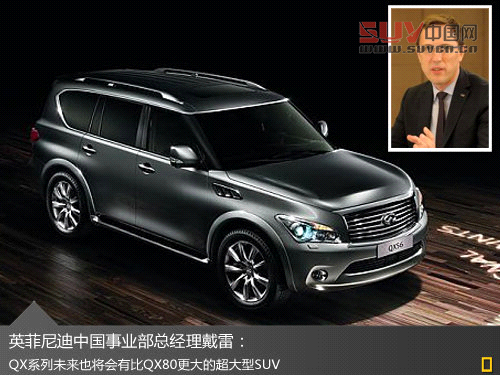 英菲尼迪在SUV產品線上一直在強化布局,隨著全新命名體系的推出更多SUV產品也已在規劃之中。近日英菲尼迪中國事業部總經理戴雷在接受媒體采訪時表示:“QX系列未來將會有比QX80更大的超大型SUV推出。”網通社了解到,這款全新SUV將比現款QX80有著更大的車身尺寸與更高的市場定位,或將命名為QX90。