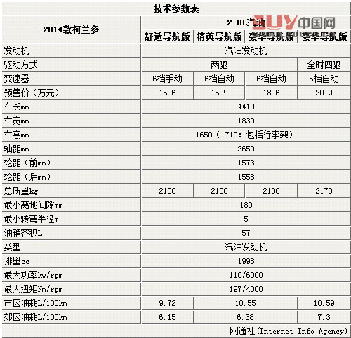 新款柯蘭多在車身尺寸上與現款車型保持一致,此次改款的車型僅為汽油版,動力系統依舊沿用了現款車型的2.0L發動機,最大功率110kw,峰值扭矩197N·m。