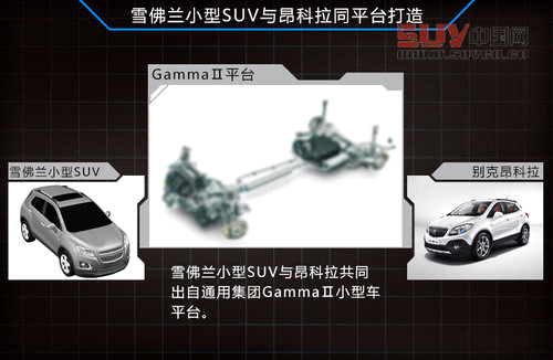 雪佛蘭曾在去年的巴黎車展上首發了一款小型SUV——Trax,但該車至今沒有引入國內銷售。中國這一市場是雪佛蘭不可缺少的一部分,其也將效仿福特,針對中國小型SUV市場將Trax車型國產,據悉,新車將與別克昂科拉共同出自通用Gamma Ⅱ平臺,最大程度上縮減了新車的研發成本和周期。
