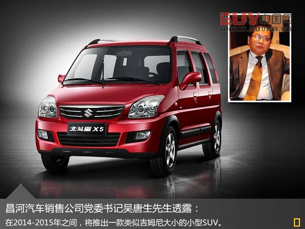 SUV中國網(wǎng)報(bào)道 作為已成立18年的合資車企,昌河鈴木旗下車型仍屈指可數(shù)。而面對產(chǎn)品線單一的局面,昌河汽車宣布了9+9產(chǎn)品規(guī)劃(將推出九款改款車型以及9款全新車型),詣在通過新產(chǎn)品的推出進(jìn)一步刺激銷量,而其中小型SUV的推出倍受消費(fèi)者關(guān)注。日前,昌河鈴木銷售公司黨委書記吳唐生先生透露了相關(guān)細(xì)節(jié):“在2014-2015年之間,將推出一款類似吉姆尼大小的小型SUV。”此外,網(wǎng)通社了解到,該款新車將基于北斗星平臺(tái)打造,上市后將與別克昂科拉、福特翼搏等車型競爭。