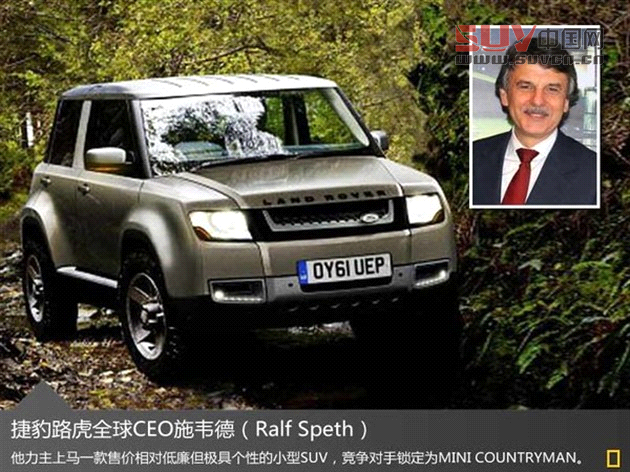 SUV中國網報道 目前SUV市場逐漸細分化,一直專注于生產豪華SUV產品的路虎也計劃進一步完善產品線,推出不同級別的SUV產品。近日網通社了解到,曾在寶馬集團工作20余年,現任捷豹路虎全球CEO的施韋德力主推出一款售價相對低廉但極具個性的小型SUV,競爭對手鎖定為MINI COUNTRYMAN。動力方面,路虎小型SUV有望搭載與極光相同的2.0T增壓引擎,并提供兩驅和四驅版車型。