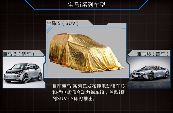 隨著環(huán)境污染日益嚴重同時世界各地對于平均油耗的要求越發(fā)嚴格,各汽車廠商加大投入研發(fā)新能源車型。寶馬集團于2011年正式發(fā)布i子品牌,宣布其成為旗下電動車專屬品牌,其中i3于今年7月份在北京、倫敦、和紐約三座城市全球首發(fā),i8的量產(chǎn)版車型也在法蘭克福車展中首次亮相,為了讓電動車產(chǎn)品陣容更加全面,寶馬也將推出首款純電動SUV-i5,并且未來還會陸續(xù)推出該品牌的新車型。