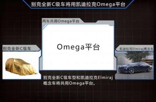 別克計劃推出的全新C級車將基于Omega平臺研發,而Omega是通用的一個新平臺,其任務是負責通用旗下高端車型的生產,據了解,凱迪拉克Elmiraj概念車也是基于這一平臺研發。此外,通用汽車CEO丹·艾克森曾表示:“未來兩年內凱迪拉克將發布一款大型轎車”,此款車同樣是出自Omega平臺。