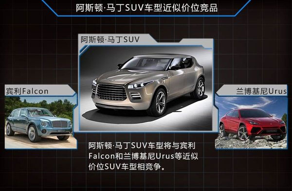 阿斯頓·馬丁作為超豪華品牌,旗下全新SUV車型上市后,將與賓利和蘭博基尼分別以Falcon和Urus概念車打造的SUV車型競爭。而未來包括勞斯萊斯和瑪莎拉蒂等品牌旗下SUV車型正式亮相后也將使這一SUV細分市場競爭更為激烈。