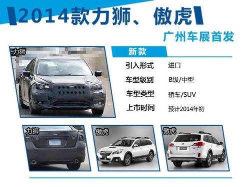目前斯巴魯對旗下森林人和BRZ均已完成更新升級,其未來也將對現有產品序列進行更新,這其中就包括了力獅和傲虎。近日網通社從斯巴魯(中國)官方了解到:斯巴魯2014款力獅以及2014款傲虎將于本月21日在廣州車展首發亮相。此外網通社通過查詢相關資料發現:新款力獅與傲虎外觀較現款均有小幅調整。
