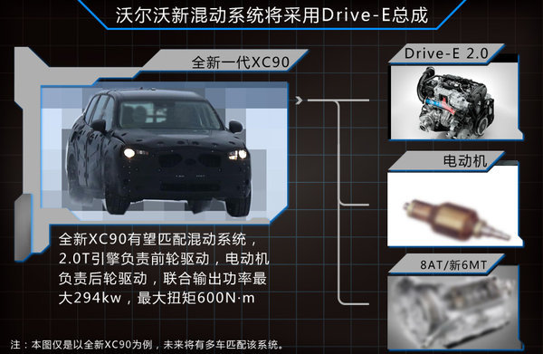 另外SPA平臺技術以及Drive-E動力總成將成為未來該品牌主要的技術支撐,其在今年亮相的全新一代旗艦級SUV產品XC90有望率先應用。其中該款產品將匹配全新研發(fā)的8速自動變速箱,并在動力方面采用由2.0T發(fā)動機以及電動機所組成的混動系統(tǒng),聯(lián)合最大功率達294kW,最大扭矩則為600N·m。