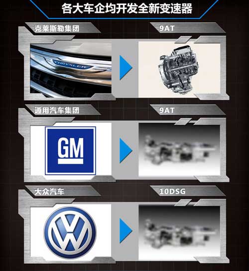 除了克萊斯勒集團普及9速變速器外,各大廠商也都進行了傳動系統方面的研發力度,其中通用汽車已經和福特宣布共同研發全新的9速變速器,以用于未來的全新車型;此外大眾汽車也暗示了目前正在開發10速DSG變速箱,未來能夠用于旗下多品牌車型中,以進一步提升燃油經濟性。