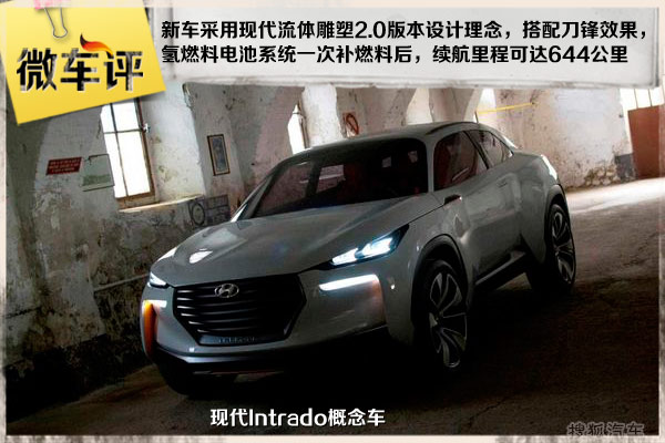 動力方面:Intrado概念車將展示現代全新的燃料電池技術,一次補充燃料可行駛644千米,百公里加速時間將低于12秒。