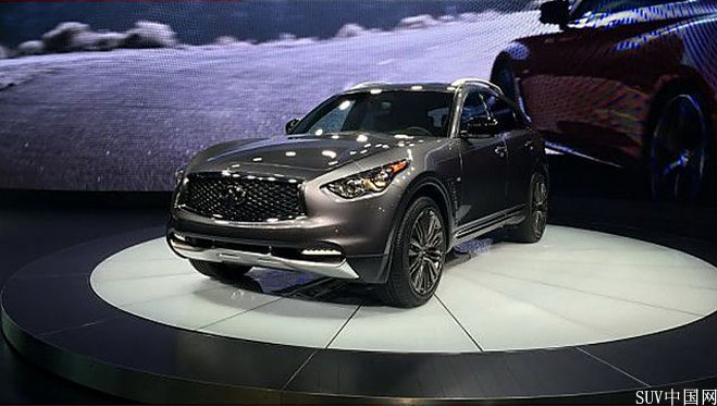 本次車展上,英菲尼迪帶來了QX70 Limited車型,該車基于現款QX70打造,在外觀和內飾設計上有所升級。新車的前進氣格柵和前保險杠的造型更加動感,在前保險杠中還配備有全新的LED日間行車燈和銀色護板。在內飾方面,車輛采用了黑白雙色搭配,在中控臺等多處還采用了鋁制飾板進行裝飾。此外,新車的座椅采用皮革包裹,并設計有菱形的圖案。