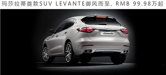 【SUV中國網(wǎng)】日前,有國內(nèi)媒體報道,瑪莎拉蒂全新SUV Levante S的售價或為147.8萬元,該車將于4月25日開幕的北京車展正式公布售價。此前瑪莎拉蒂已經(jīng)公布了Levante的官方指導價為99.98萬元,兩款車目前均可從天貓旗艦店預定。