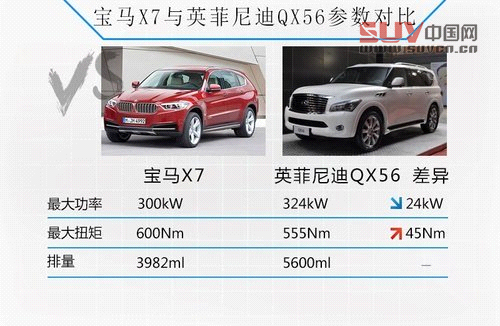 動力方面,寶馬X7將搭載V84.0T雙增壓發動機,與之匹配的則是8速自動變速箱。這款大型SUV將競爭對手鎖定為英菲尼迪QX56。寶馬X7搭載的V8 4.0T渦輪增壓發動機最大功率為300kW,最大扭矩為600 ,雖然和最大功率為324kW,最大扭矩為555 的英菲尼迪QX56相比較略占下風。