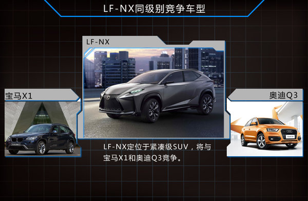 近日,豐田集團北美營運部執行長暨營運長Jim Lentz在美國汽車分析師大會上發布了雷克薩斯LF-NX的照片,但從曝光的照片來看與此前發布的概念車的外觀設計有著很大差異,這款SUV極有可能是LX-NX概念車的量產版本。網通社通過查閱相關資料后發現,該款車型預計于今年北京國際車展首發,并正式定名為雷克薩斯NX,最早于今年夏天上市銷售。NX為雷克薩斯旗下首款緊湊級跨界SUV,未來量產后競爭對手將鎖定為奧迪Q3等車型。
