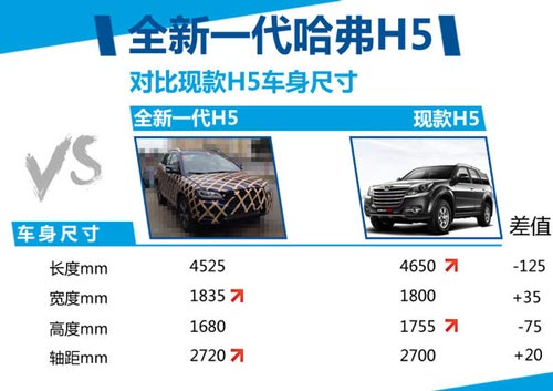 據(jù)了解,全新一代哈弗H5的車型定位從硬派SUV轉型為城市時尚SUV,不再采用非承載車身和后整體橋式懸掛,取而代之的是承載式車身和后雙橫臂式獨立懸掛。在車身尺寸方面,換代哈弗H5也進行了調整,長寬高分別為4525·1835·1680mm,軸距為2720mm。相比現(xiàn)款車型而言寬度和軸距有多所拓展,這將有效提升車內人員的乘坐空間。