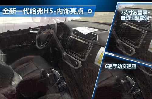 在車內配置上,雖然是一臺換代H5的試裝車,但是我們仍能看出該車擁有很高的配置。如真皮三幅式運動方向盤配有多功能按鍵、7英寸可觸式液晶屏、雙區(qū)自動恒溫空調、真皮座椅、6速手動變速箱等,這些配置在這款緊湊SUV車型將具有絕對的競爭力。