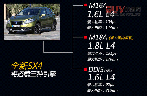 應用在鈴木車型中的M16A引擎已經有著不錯的市場口碑,出色的燃油經濟性是最大特點,而此次海外所發布的只公布了1.6L的汽油和柴油兩款引擎。而未來進入國內后,使用現款動力將是必然選擇,1.8L引擎也將搭載到新SX4中。不過在變速箱的匹配上,除了5速手動外,海外的模擬7速CVT變速箱有望替換現有的4AT變速箱。