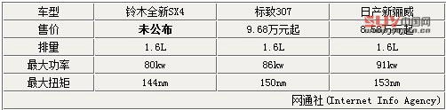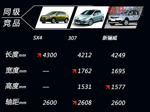 以目前鈴木SX4所在市場的競品車型而言,曾經的競爭車型絕大多數已經完成了換代,價格和配置都相對較高,現在SX4的尺寸與307和驪威處于同一水平,盡管使用全新一代的SX4的尺寸相比,也并沒有太大優勢,仍然處于這一級別的正常水平。當然,由于新車型必然會比現款車型要有更高的定位,新SX4必將會有更高的目標。