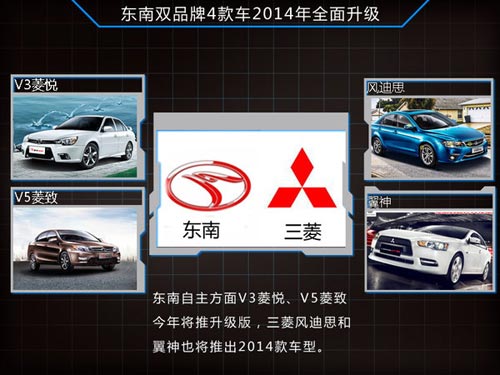 此外王昕還透露:“2014年東南汽車將繼續(xù)擴充雙品牌產(chǎn)品矩陣,今年東南汽車還將推出4款改款車型,包括V3菱悅改款車型;V5菱致升級版;三菱風迪思、翼神的2014款升級車型。此外東南旗下首款SUV在不久的將來進入市場”。此外,網(wǎng)通社從東南汽車官方了解到:未來5年,東南汽車將在新車方面繼續(xù)發(fā)力,雙品牌新車型將增至20多款,實現(xiàn)乘用車的全系列覆蓋。