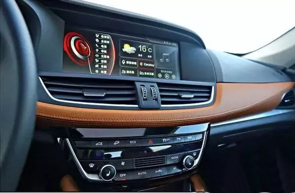 內飾簡潔穩重,其中控臺運用了真皮包裹并輔以縫線處理,營造出較為出色的質感。寶沃BX7的中控臺是一大亮點,內嵌一塊12.3英寸觸控屏非常大氣,觸控反應速度也讓人滿意。