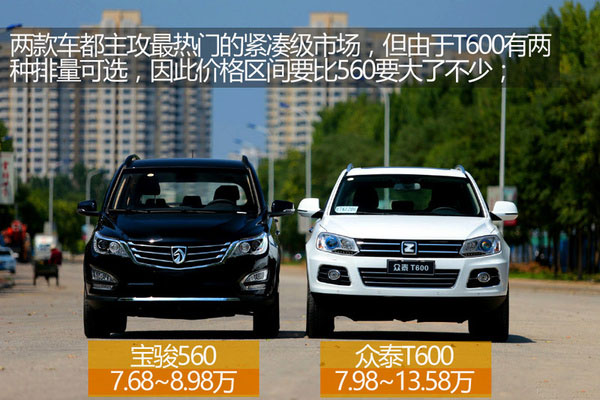 眾泰T600,軸距超2.8m,車長也在4.6m以上,因而被定位為中型SUV,不過它的價格卻一點都不高,車型的價格區間為7.98-13.58萬,著實讓人心動不已。目前,眾泰T600有1.5T和2.0T兩種動力共計9款車型可供選擇,其中2.0T是新推出的車型,動力表現優于同級別車型;寶駿560定位為緊湊級SUV,其實尺寸除了軸距與眾泰T600相差較大外,其它數據和眾泰T600是不相伯仲的,它的價格區間是7.68-9.38萬,比眾泰T600要相對便宜一些,這種價格間的差異更多的出現在配置及本身制造工藝上,眾泰T600所選用的渦輪增壓發動機更偏向于經濟節能,通過渦輪增壓的介入壓榨更高的動力表現,這是寶駿560所達不到的。