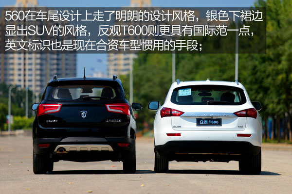 車尾風格相比較之下,寶駿560要略微高一些,這也就直接看出了其底盤結構源自商務車,所以對于按照成熟SUV設計思路來打造的眾泰T600來說絕無可比性。