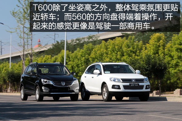 在聊駕駛感受之前我想先說說兩款車的駕乘氛圍,由于兩車中控臺造型以及方向盤角度的不一樣,所以兩款車營造出來的感覺也有所不同。T600駕駛席的視野角度更像是一部家用的城市級SUV,說白點兒就是除坐姿高一點兒,操作起來與一部轎車并無兩樣。但560則更像是一部商用車,尤其是操作方向盤時,那種感覺很像以前我試駕過的日產NV200,由于與水平方向夾角更小所以得端著開。