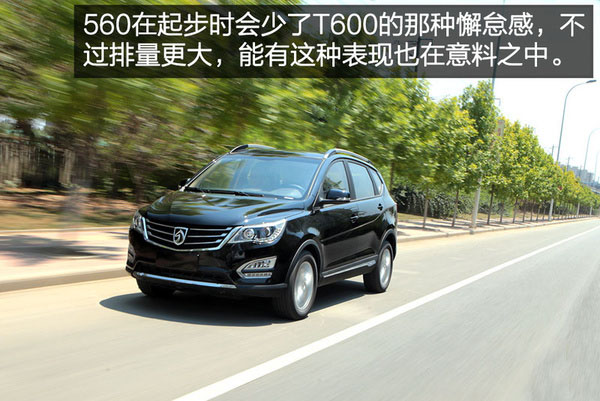相比T600略帶出彩兒的動力表現,寶駿560則顯得有些過于平淡乏味了。1.8L自然吸氣發動機雖然可以倚仗排量的優勢,在低速起步時能表現出比T600更有勁道的動力響應,但是這種優勢也只局限于2000rpm以下,可以說也就是起步的一瞬間,而當T600真正進入爆發狀態之后,560的提速感則顯得遜色了不少。