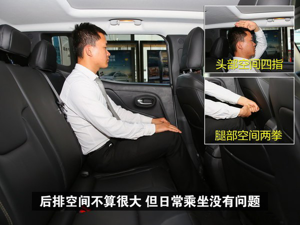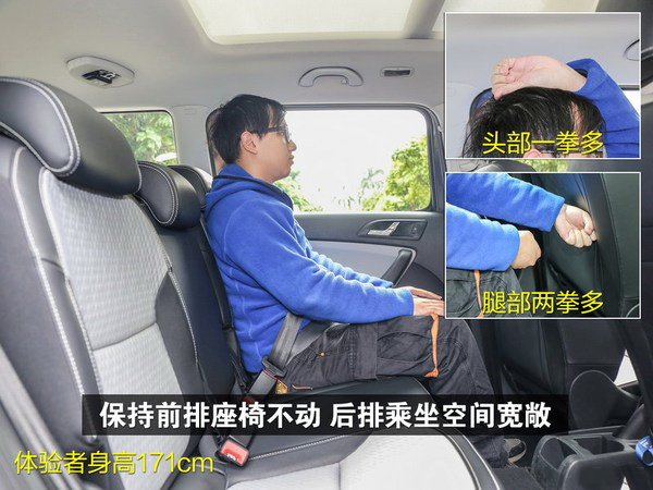 自由俠的空間表現同樣值得肯定。2570mm長的軸距并不被人們看好,但是滿足日常需求是沒有問題。身高173cm的體驗者腿部能夠保證兩拳的距離,而對于標準身高的乘客來說,后排空間不會覺得過于擁擠。畢竟自由俠受到外觀設計以及懸掛的影響,還是損失了一些乘坐空間。