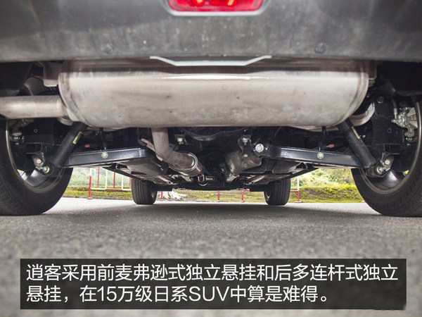 2016款逍客主打的還是2.0L自然吸氣發動機,與之匹配的是CVT變速箱,這樣的動力組合算不上澎湃,但是很符合都市SUV的定位。懸掛則采用了前麥弗遜式獨立懸掛和后多連桿式獨立懸掛。15萬級日系SUV基本上都采用了后扭力梁式非獨立懸掛,而逍客的這一差異則顯得非常突出,畢竟舒適度對逍客來說非常重要,而事實上逍客的底盤調校非常符合其車型定位。