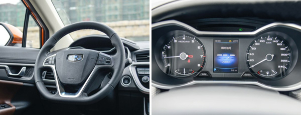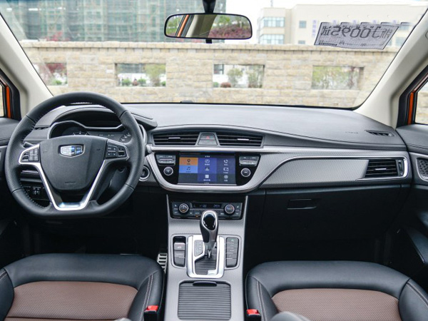 內(nèi)飾采用了吉利家族最新設(shè)計(jì)理念,延續(xù)了博越的風(fēng)格,弧線的線條給人非常舒展的視覺效果,雙色搭配的內(nèi)飾和網(wǎng)格狀中控飾板顯得很有品味。方向盤與目前在售大部分吉利車型的相同,儀表盤采用常見的雙儀表盤配中間彩色液晶顯示屏的設(shè)計(jì),夜間點(diǎn)亮后的藍(lán)光使其非常有科技感。