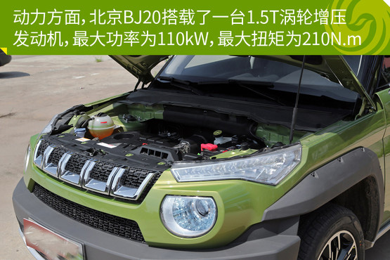 動力方面,北京BJ20搭載一臺1.5T渦輪增壓發動機,最大輸出功率為110kW,最大扭矩為210N.m。傳動系統,與發動機匹配的則是6速手動和CVT無級變速箱,變速箱還帶有運動模式、雪地模式和手動換擋模式。