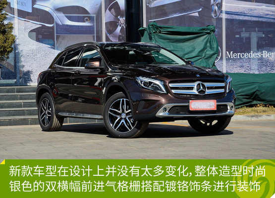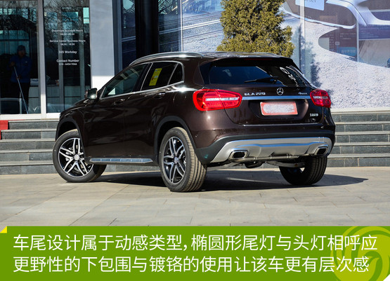 奔馳GLA級是一款緊湊型SUV產品,自國產以來在市場上獲得較好的表現,2016款車型在設計上并沒有太多變化,整體造型時尚,線條也很炫酷,銀色的雙橫幅前進氣格柵搭配鍍鉻飾條進行裝飾,前大燈組根據車型配置的不同,采用帶透鏡的大燈和LED光源。車尾設計屬于動感類型,更野性的下包圍使層次感和設計感都很不錯。